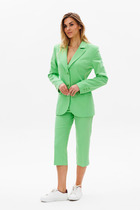 Брюки свободные прямого силуэта. На передних половинках выполнены по две односторонние складки. Пояс притачной на резинке с втянутым шнуром. В боковых швах карманы.