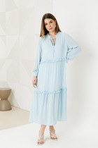 Блуза из премиальной ткани "Искринка" типа вуаль, свободного покроя со спущенной линией плеча. Воротник типа "апаш". Спинка со средним швом. Рукав длиной 3/4. Имеется навесной пояс.