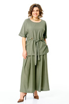 Юка-брюки свободные, расширенного силуэта.Пояс притачной на резинке. В боковых швах карманы.На передних половинках обработаны глубокие встречные складки. В комплект входит навесной пояс. Вся фурнитура металлическая premium качества.