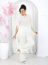 Комплект женский, состоящий из блузки и юбки. Блузка свободного силуэта с центральной застёжкой на декоративные кнопки по планке, воротник рубашечного типа. По переду блузки декоративны клапана с отделкой в виде декоративной кнопки. По спинке притачная кокетка. Линия плеча спущенная. Рукав втачной, длинный с заложенной складкой по низу и притачной манжетой застёгивающейся на декоративные кнопки. Низ ассиметричный с небольшими разрезами от низа в боковых швах.