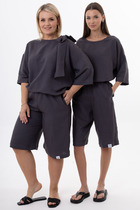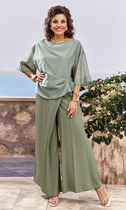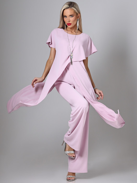 В элегантном летнем костюме, который состоит из удлинённого блузона и свободных брюк на резинке, вы всегда будете в центре внимания! Костюм сшит из непрозрачного струящегося материала. Лиф блузона скроен на запах в два слоя спереди и сзади, поэтому блузон не просвечивает, а удлинённые полочки красиво развиваются при ходьбе.