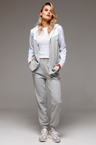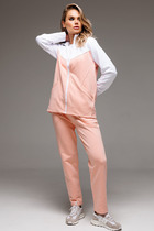 Костюм женский из плотного гладкокрашеного трикотажного полотна "кулирка", состоящий из футболки и шорт. Футболка - свободного покроя, с удлиненными плечевым и швами, короткими втачными рукавами и горловиной овальной формы, обработанной втачной планкой. В нижней части переда слева настрочен декоративный элемент прямоугольной формы. По горловине проложена отделочная строчка. Шорты - классического покроя, на притачном поясе с эластичной тесьмой внутри и карманами в боковых швах. Для регулирования степени прилегания шорт по талии в пояс вставлен шнурок, продетый через два отверстия в соединительных швах в центре пояса.