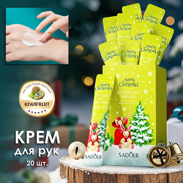 Набор из 20 штук увлажняющих и питательных ароматных кремов для рук с экстрактом киви.Обеспечивает заживление и смягчение кожного покрова. Активно насыщает кожу необходимыми витаминами, придает ей гладкость, нежность и эластичность. Защищает от разрушительного влияния бытовой химии и агрессивного воздействия неблагоприятной среды.