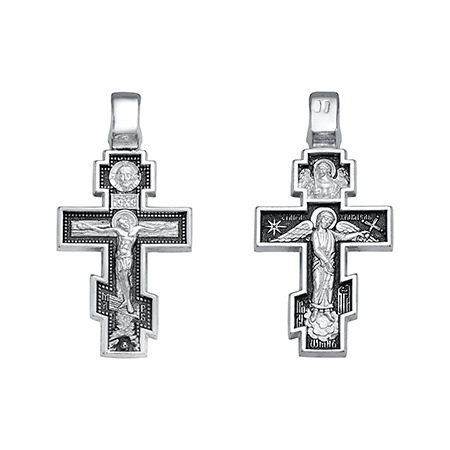 Крест (Ангел Хранитель) из серебра литье частичное чернение