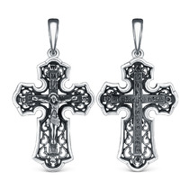 Крест православный из чернёного серебра - Да воскреснет бог 2,9 см 925 пробы 1-2