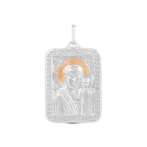 Подвеска-икона из родированного серебра с золочением - Казанская БМ 925 пробы п0