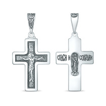 Крест православный из чернёного серебра - Спаси и сохрани 4,9 см 925 пробы 00-00