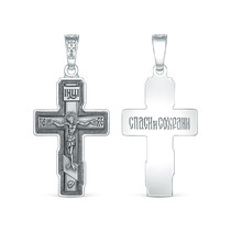 Крест православный из чернёного серебра - Спаси и сохрани, 3,9 см 925 пробы 00-0