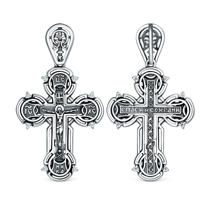 Совместные закупки Екатеринбург Ювелирные украшения и бижутерия Подвески — Крест из чернёного серебра с фианитами - Спаси и сохрани, 4 см ПР-151ч