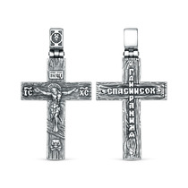 Крест из чернёного серебра - Распятие, Спаc Неpукотвоpный, Спаси и сохрани, Арха