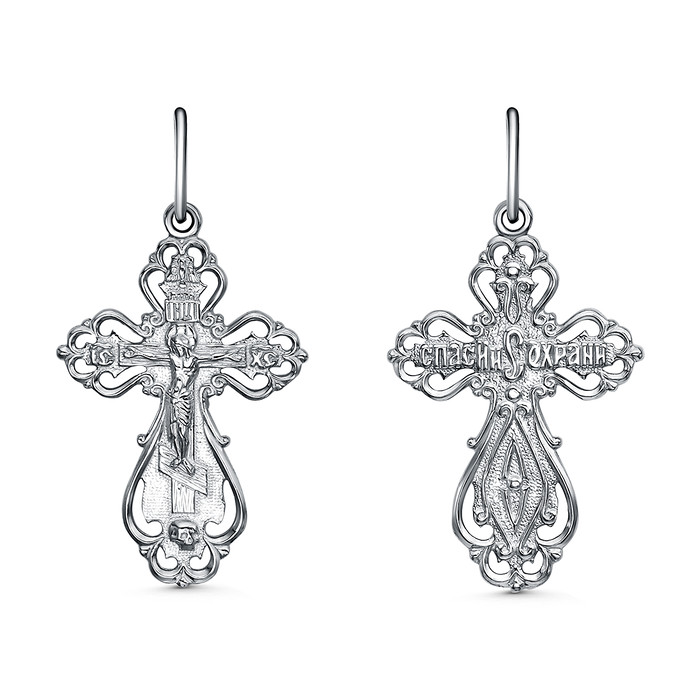 Совместные закупки Екатеринбург Ювелирные украшения и бижутерия Подвески — Крест из серебра родированный - 3,3 см 925 пробы К3-497р