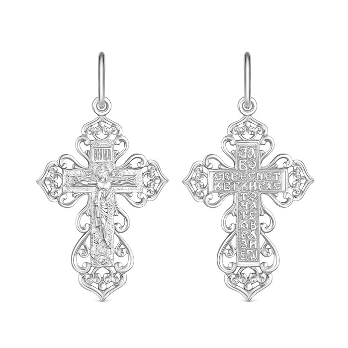 Совместные закупки Екатеринбург Ювелирные украшения и бижутерия Подвески — Крест из серебра родированный - Да воскреснет Бог 3,9 см 925 пробы К3-493р