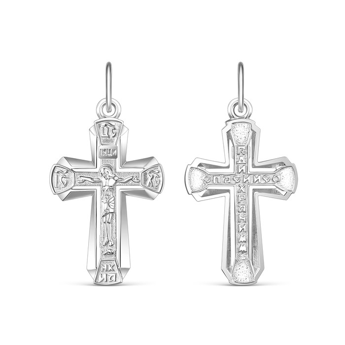 Совместные закупки Екатеринбург Ювелирные украшения и бижутерия Подвески — Крест из серебра родированный - Спаси и сохрани 3,4 см 925 пробы К3-593р