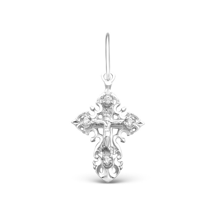 Совместные закупки Екатеринбург Ювелирные украшения и бижутерия Подвески — Крест из серебра с фианитами родированный - 3 см 925 пробы 3-081р