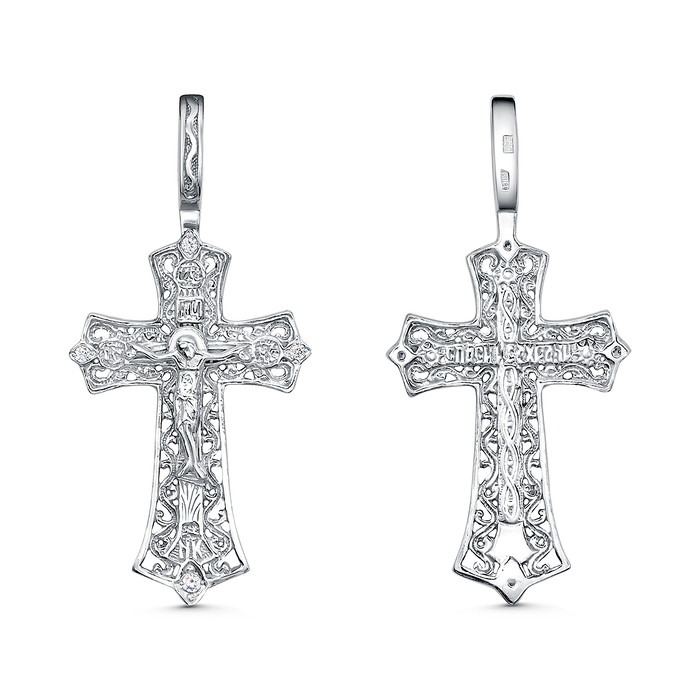 Совместные закупки Екатеринбург Ювелирные украшения и бижутерия Подвески — Крест из серебра с фианитами родированный - 4 см 925 пробы 2-162р