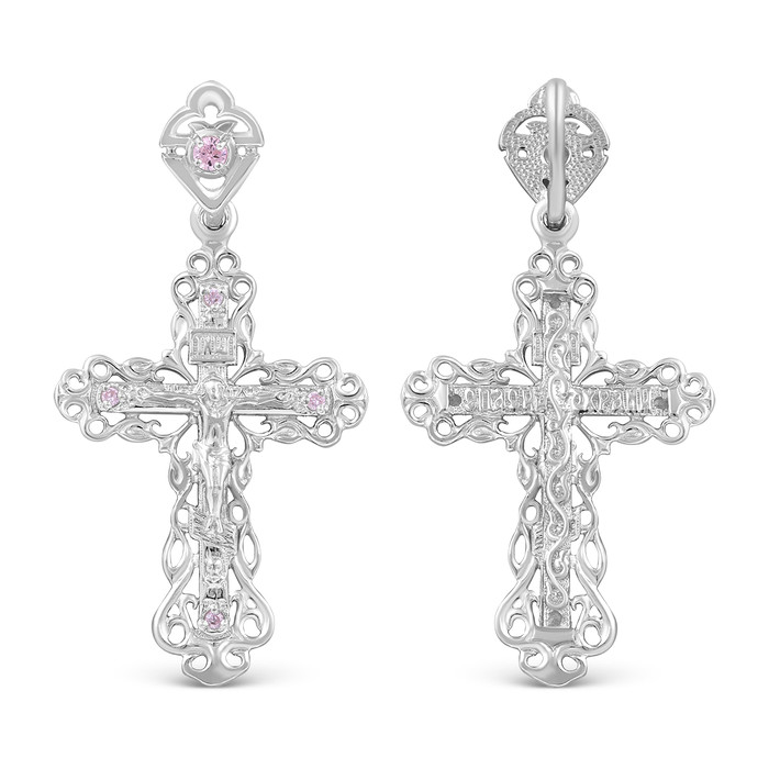 Совместные закупки Екатеринбург Ювелирные украшения и бижутерия Подвески — Крест из серебра с фианитами родированный - 4 см 925 пробы К3-251р 221