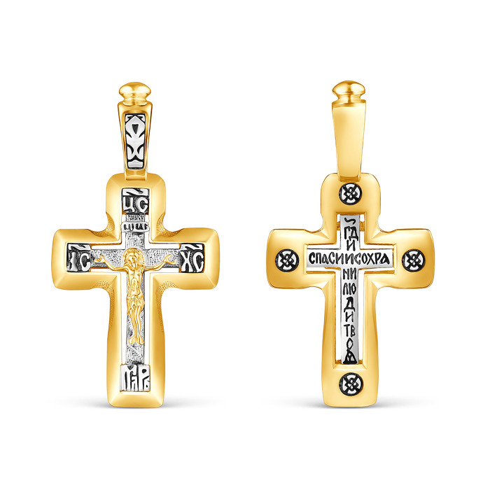 Совместные закупки Екатеринбург Ювелирные украшения и бижутерия Подвески — Крест из серебра с золочением и чернением - 3,3 см 925 пробы К3-649чз