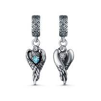 Подвеска религиозная из чернёного серебра с голубым фианитом - Голубь (символ Св