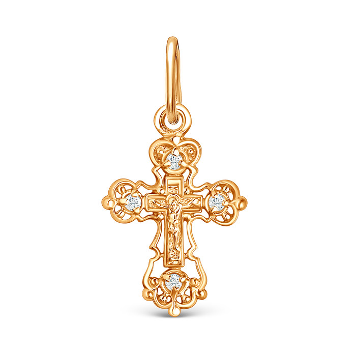 Совместные закупки Екатеринбург Ювелирные украшения и бижутерия Подвески — Крест из золочёного серебра с фианитами - 2,9 см 925 пробы 3-086з