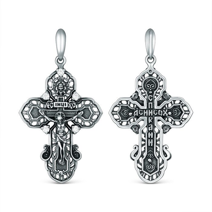 Совместные закупки Екатеринбург Ювелирные украшения и бижутерия Подвески — Крест православный из чернёного серебра и фианитами - Спаси и сохрани Кр-943 ч