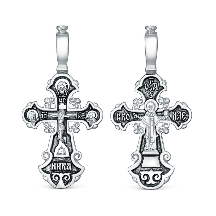 Совместные закупки Екатеринбург Ювелирные украшения и бижутерия Подвески — Крест православный из чернёного серебра - Распятие, Николай Чудотворец 3.3 см 92