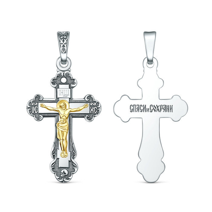 Совместные закупки Екатеринбург Ювелирные украшения и бижутерия Подвески — Крест православный из чернёного серебра с лимонным золочением - Спаси и сохрани,