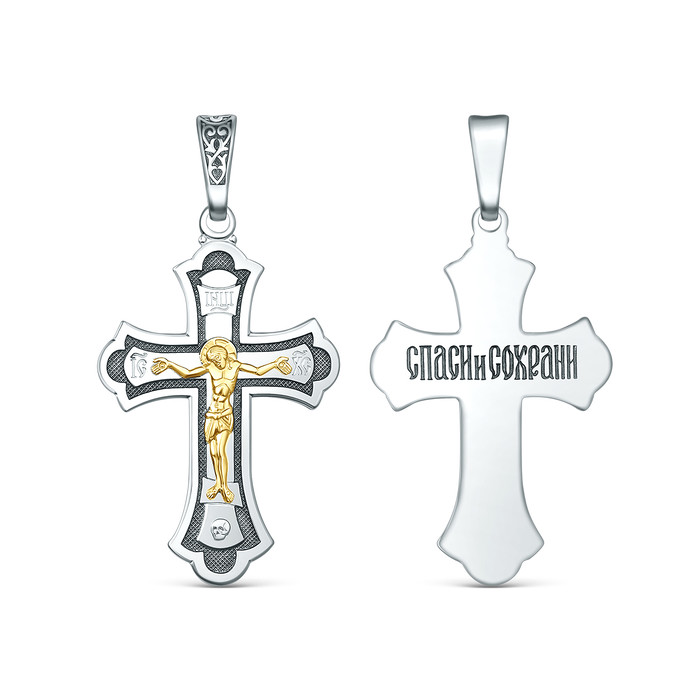 Совместные закупки Екатеринбург Ювелирные украшения и бижутерия Подвески — Крест православный из чернёного серебра с золочением - Спаси и сохрани, 3,9 см 0