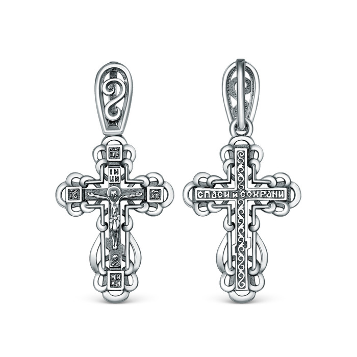 Совместные закупки Екатеринбург Ювелирные украшения и бижутерия Подвески — Крест православный из чернёного серебра - Спаси и сохрани, 2,9 см ПР-107ч