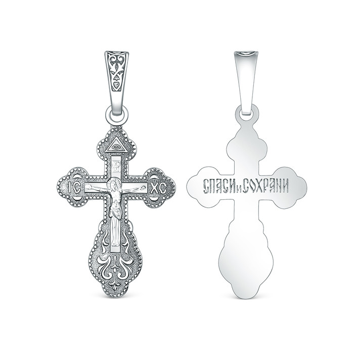 Совместные закупки Екатеринбург Ювелирные украшения и бижутерия Подвески — Крест православный из чернёного серебра - Спаси и сохрани, 3,3 см 00-0012-2