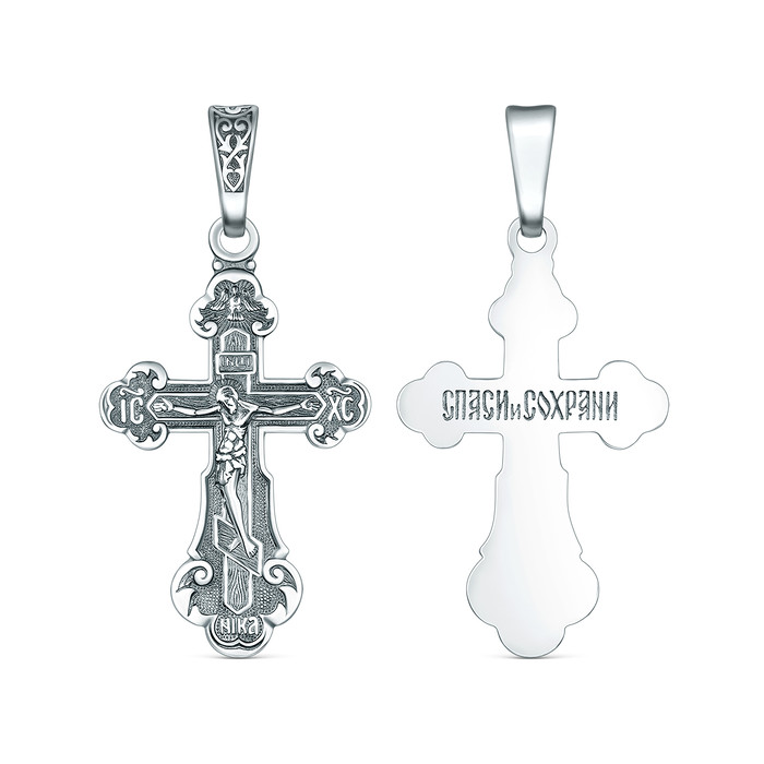 Совместные закупки Екатеринбург Ювелирные украшения и бижутерия Подвески — Крест православный из чернёного серебра - Спаси и сохрани 3,6 см 925 пробы 00-00
