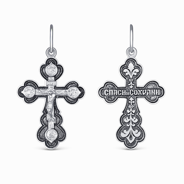 Совместные закупки Екатеринбург Ювелирные украшения и бижутерия Подвески — Крест православный из чернёного серебра - Спаси и сохрани 3,8 см 925 пробы Г-09ч