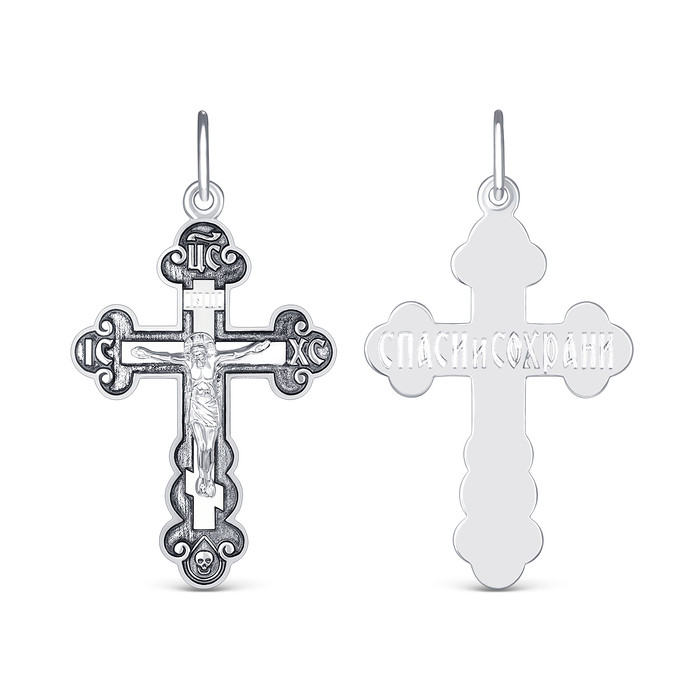 Совместные закупки Екатеринбург Ювелирные украшения и бижутерия Подвески — Крест православный из чернёного серебра - Спаси и сохрани 3,9 см 925 пробы 1-008
