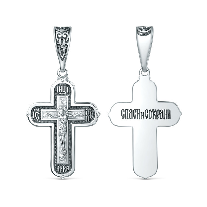 Совместные закупки Екатеринбург Ювелирные украшения и бижутерия Подвески — Крест православный из чернёного серебра - Спаси и сохрани, 4,4 см 00-0024-2