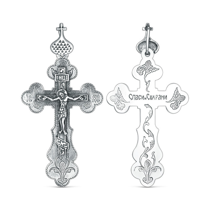 Совместные закупки Екатеринбург Ювелирные украшения и бижутерия Подвески — Крест православный из чернёного серебра - Спаси и сохрани, 6,2 см кр-308ч