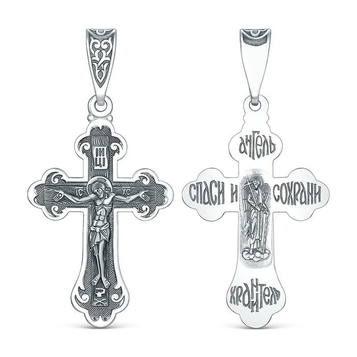 Совместные закупки Екатеринбург Ювелирные украшения и бижутерия Подвески — Крест православный из чернёного серебра - Спаси и сохрани, Ангел-Хранитель, 5 см
