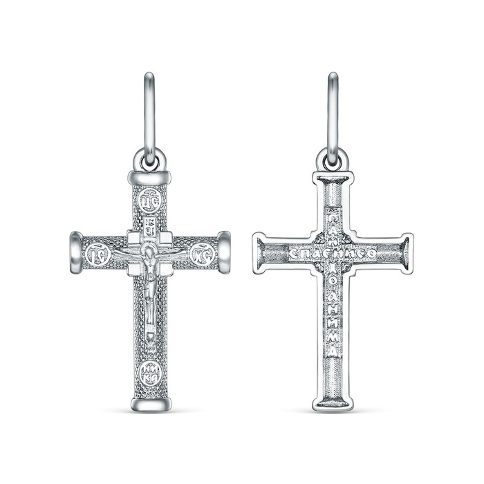 Совместные закупки Екатеринбург Ювелирные украшения и бижутерия Подвески — Крест православный из серебра родированный - Спаси и сохрани 2,8 см 925 пробы Кр