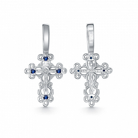 Крест с фианитом родированный серебро 925*