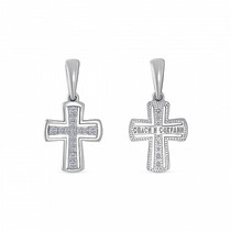 Крест с фианитом родированный серебро 925*