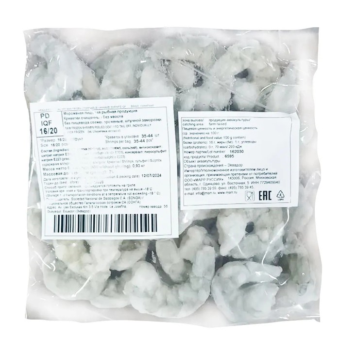 Совместные закупки Екатеринбург Продукты Прочая заморозка — Креветки очищенные без хвоста и пищевода 16/20 заморозка, Эквадор