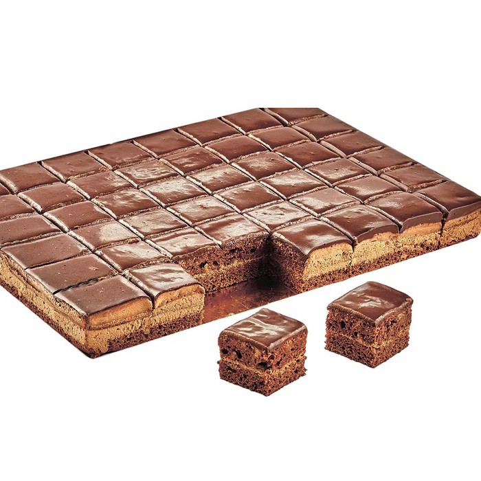 Торт Прага Кристоф - это три слоя воздушного французского шоколадного бисквита, пропитанного сиропом, и два слоя масляного крема с какао. Сверху торт покрыт шоколадным ганашем.