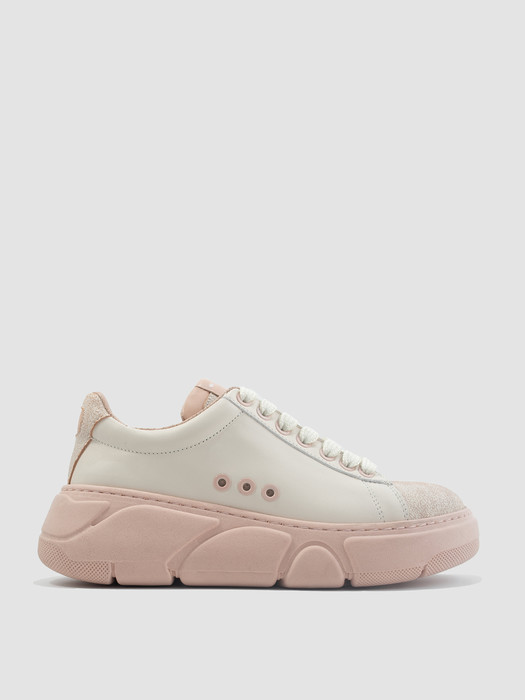 Подошва из ТЭП прочная и упругая, с ней ваши ноги не устанут. Толщина подошвы смягчает удары и защищает от мелких камней и неровностей дороги. Выступающий рант с фигурными элементами и расширенная пятка делают силуэт кедов объемным и модным. Модель представлена в белом, бежевом и двух оттенках розового. Носите кроссовки с джинсами, брюками и леггинсами в кэжуальных и спортивных образах.