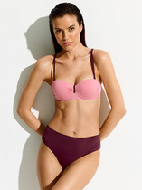 Верх, представленный в виде Push Up с формованными чашками, эффектно приподнимает грудь, визуально увеличивает объем и формирует красивое декольте. Эластичные регулируемые бретели и боковые детали, усиленные вертикальными пластинами, создают дополнительный комфорт. В комплект входят удобные слипы со средней посадкой.