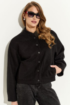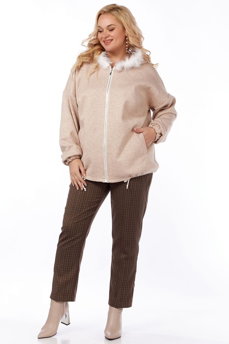 Джемпер женский свободного силуэта, на подкладке, с функциональными карманами по переду, застежка молния, по низу изделия кулиска со шнурком, капюшон украшен боа. Длина джемпера 60 см.