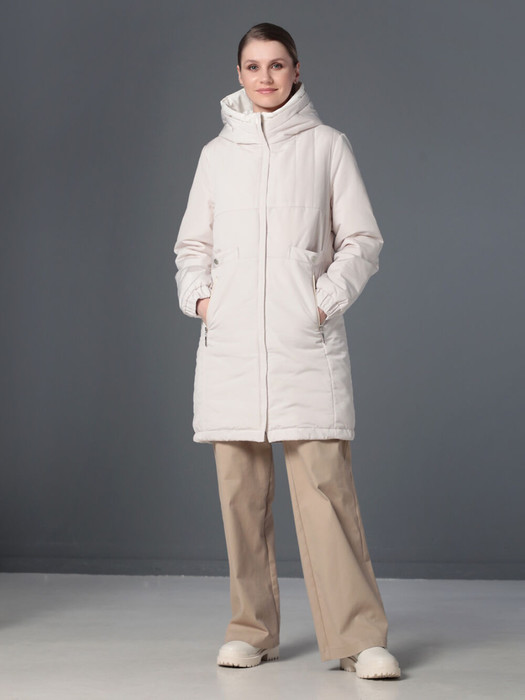Удлиненная куртка-парка прямого силуэта с втачными рукавами подходит для женщин и девушек любой  возрастной категории. Застежка на двухзамковую молнию позволяет регулировать ширину парки внизу при подъеме и ходьбе. Воротник -  стойка, переходящая в капюшон. Низ втачного рукава оформлен манжетой с эластичной тесьмой, что способствует удержанию тепла внутри куртки. Две пары прорезных карманов, удобно расположеные в швах, застегиваются либо на кнопку, либо на молнию. Есть внутренний кармашек на молнии. Плащевая ткань, из которой выполнено изделие, имеет водоотталкивающую пропитку, выдерживающую небольшой  дождь, снег и ветер. Хорошо зарекомендовавший себя утеплитель "Холлофайбер", плотностью 200гр/м, защитит от холода.