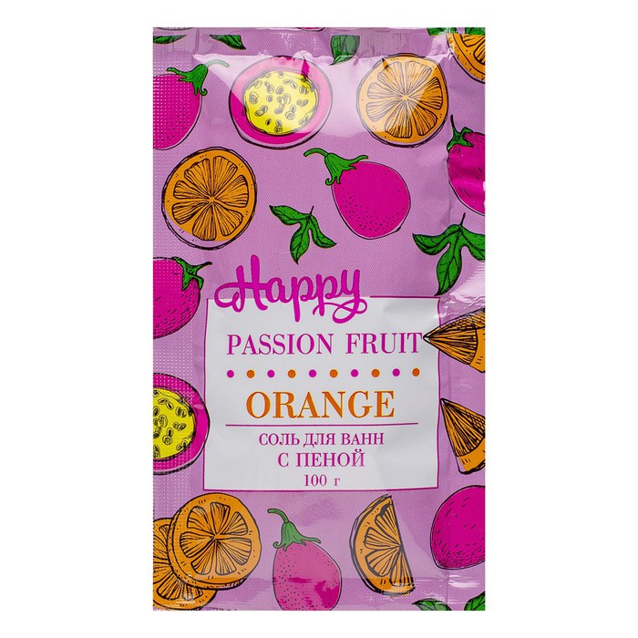 Апельсин и маракуйя: какой яркий дуэт! Новая соль из серии "Happy" с пеной для расслабления и купания. Прими ванну и ощути на себе нежнейшие пузырьки пены и притягательный, "вкусный" аромат.