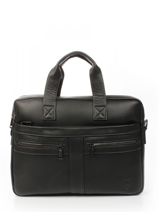 Сумка-портфель выполнена из экокожи. Детали: 2 короткие ручки по 40 см, 1 длинная регулируемая ручка 85 см – 155 см. Внутри изделия: 1 отделение на молнии, 1 карман на молнии, 2 открытых кармана, 1 карман для ноутбука на хлястике с липучкой. Снаружи изделия: 3 кармана на молнии спереди, 1 карман на молнии с оборотной стороны изделия. Брендированная подкладка из полиэстера. Металлическая фурнитура черного цвета. В комплекте фирменный пыльник.