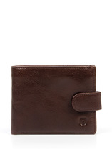 Портмоне выполнено из натуральной кожи. Детали: закрывается на кнопку, 2 открытых отделения для купюр, 1 отделение для купюр на молнии, 1 отделение для монет на кнопке, 3 кармана для карт или визиток, 1 карман с прозрачными окошком, 2 скрытых кармана, 1 отстегивающееся отделение на кнопку с прозрачным окошком. Металлическая брендированная фурнитура серебристого цвета. В комплекте фирменная черная коробка