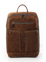 Рюкзак мужской выполнен из экокожи. Детали: 1 короткая ручка 15 см, 2 регулируемые лямки. Внутри изделия: 1 отделение на молнии, 1 карман на молнии, 2 открытых кармана, 1 карман для ноутбука или планшета на хлястике с липучкой. Снаружи изделия: 3 кармана на молнии спереди, открытые карманы по бокам рюкзака. Брендированная подкладка из полиэстера. Металлическая фурнитура черного цвета. В комплекте фирменный пыльник.
