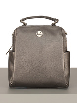 Рюкзак женский выполнен из экокожи. Детали: 2 укреплённые стропой регулируемые ручки по 85 см, маленькая ручка для держания в руке. Внутри изделия: 1 основное отделение на молнии, 2 открытых кармана, 1 карман для мобильного телефона, 2 кармана на молнии. Снаружи изделия: 1 карман на молнии на лицевой стороны, 1 карман с оборотной стороны на молнии. Брендированная подкладка из хлопка. Металлическая брендированная фурнитура серебристого цвета. В комплекте фирменный пыльник.