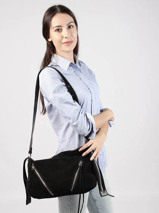 Совместные закупки Екатеринбург Женские аксессуары Сумки — LACCOMA сумка P5785-черный натуральная замша, натуральная кожа